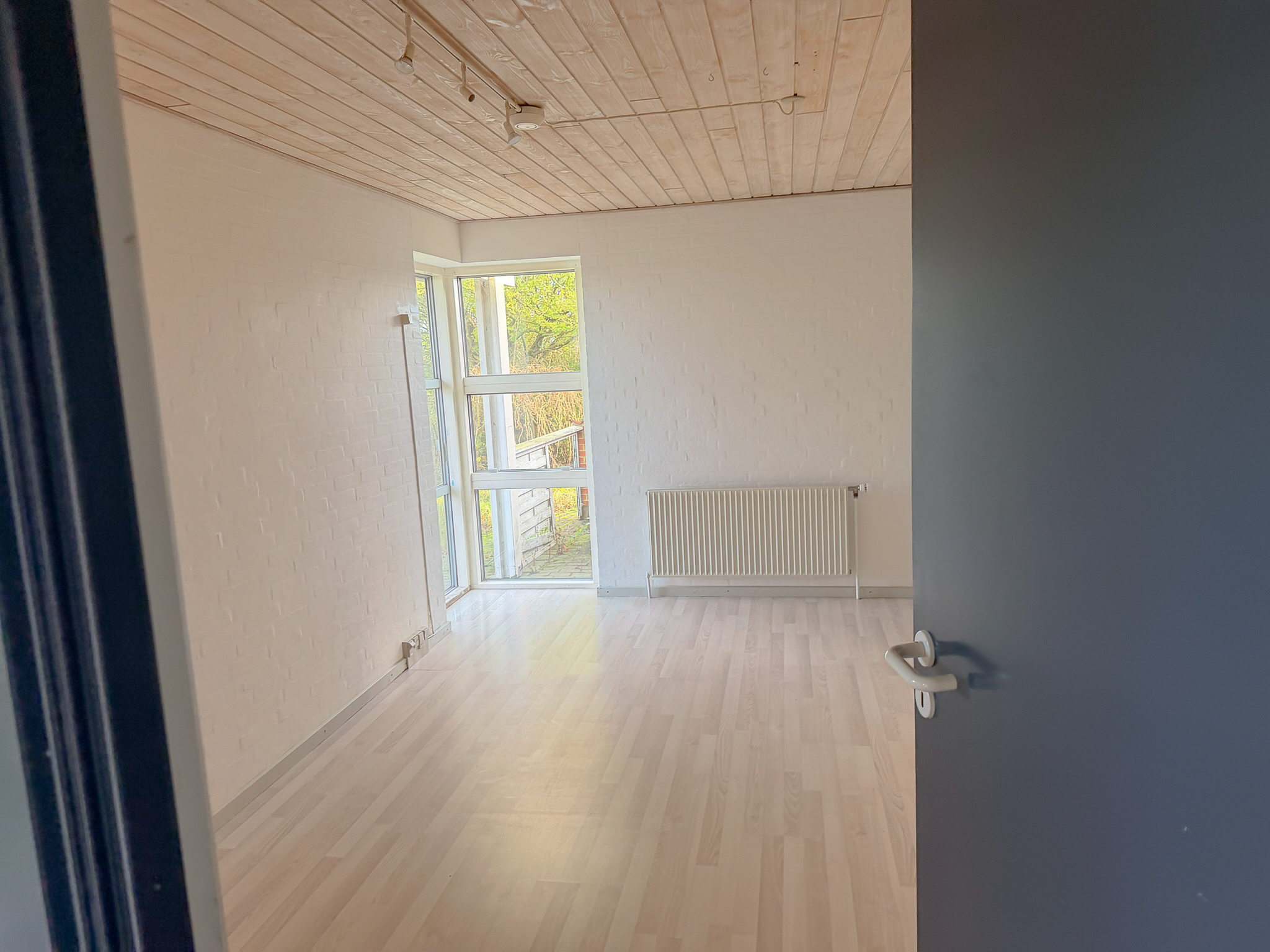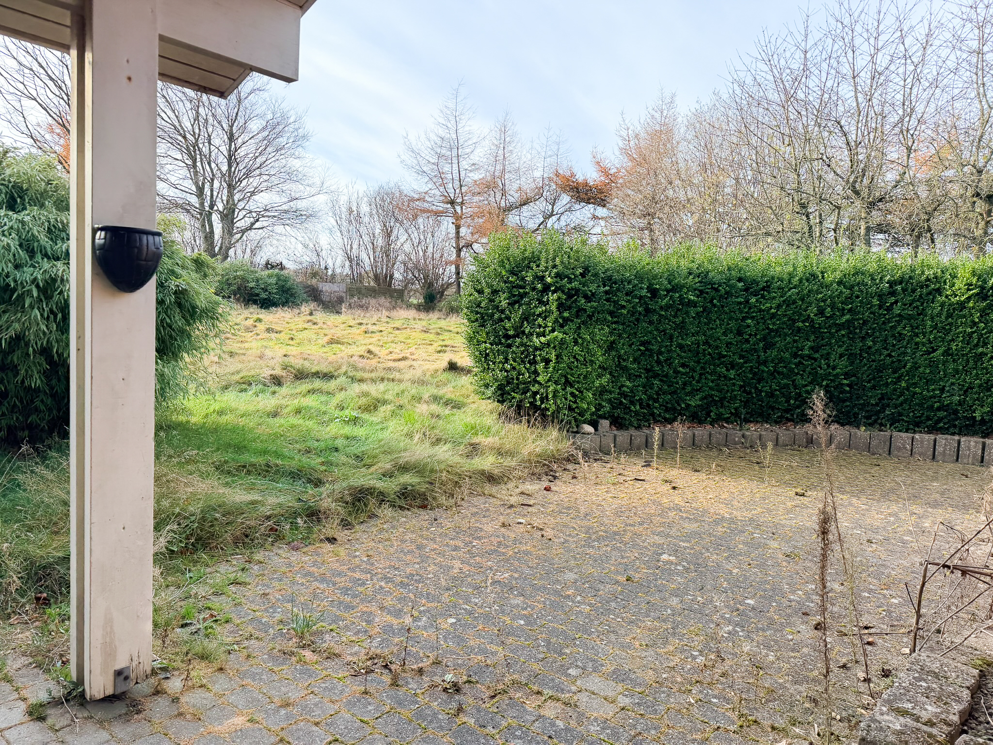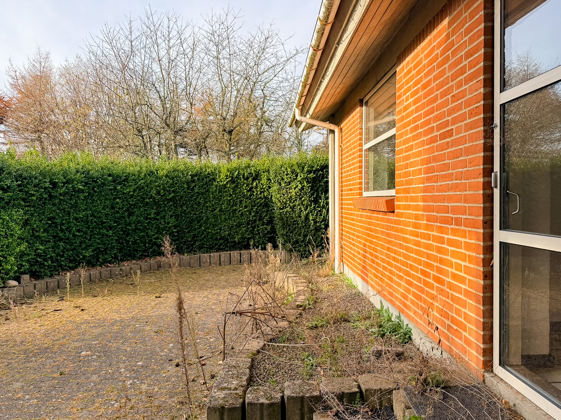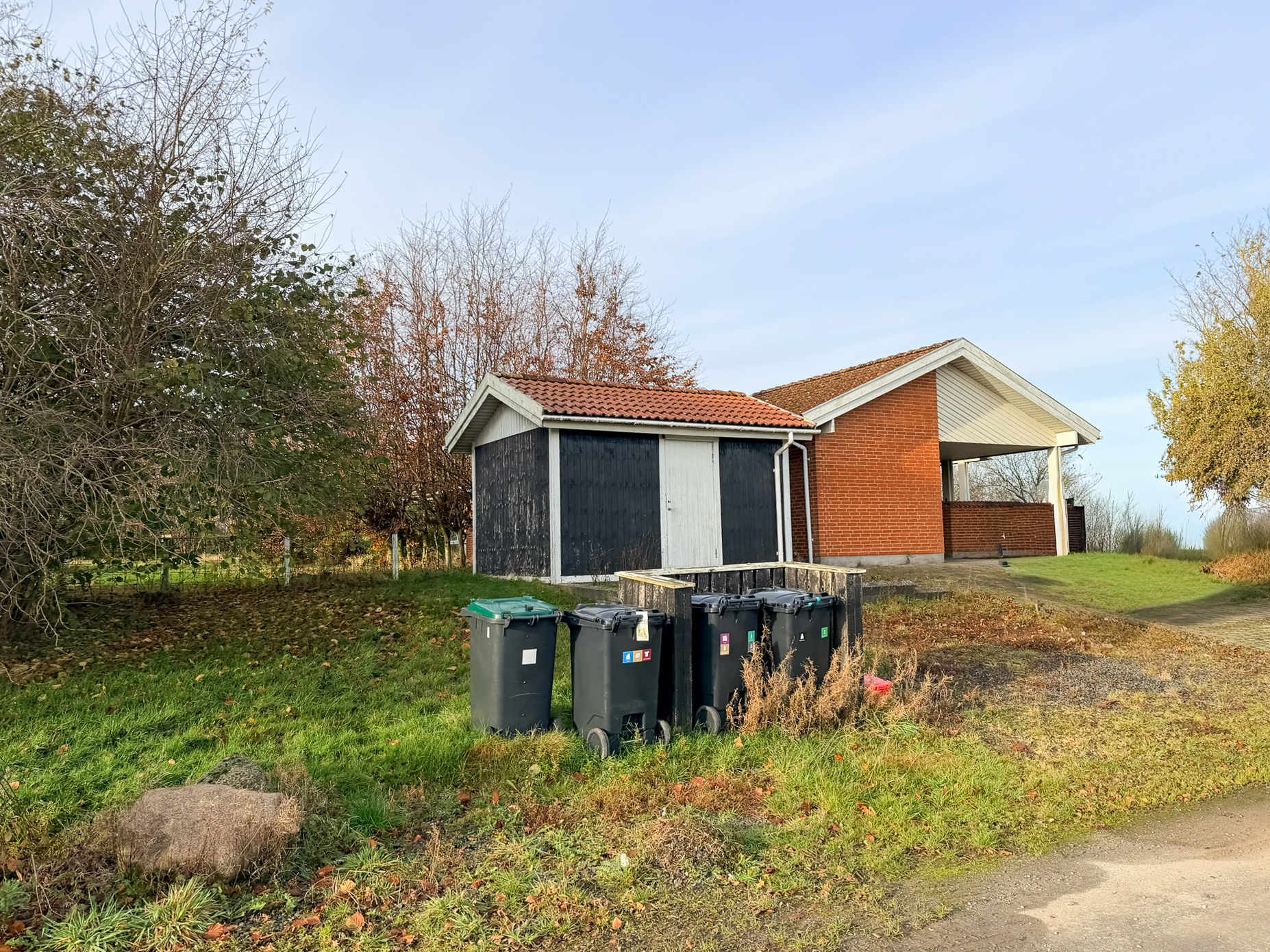Udendørs får du to skure samt en carport, og en stor have, som man selv står for vedligeholdelsen af.