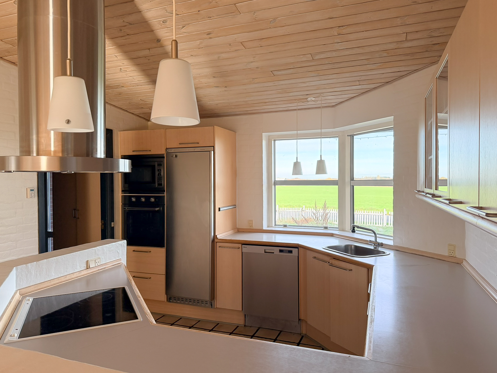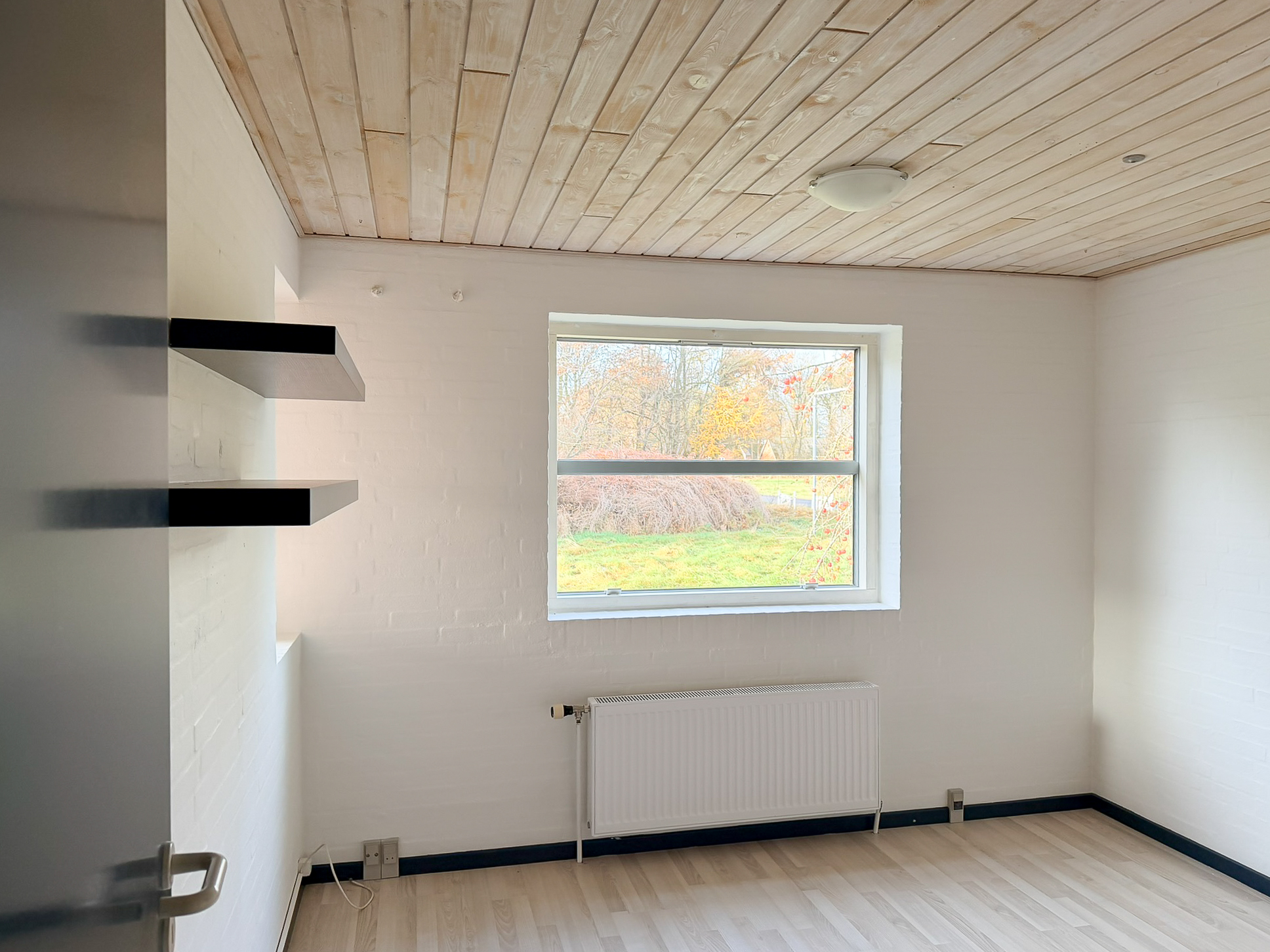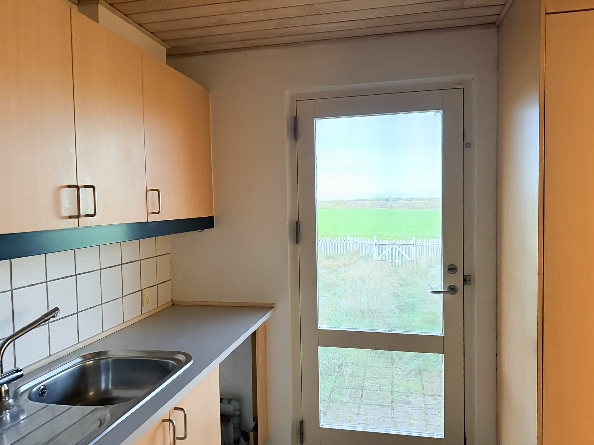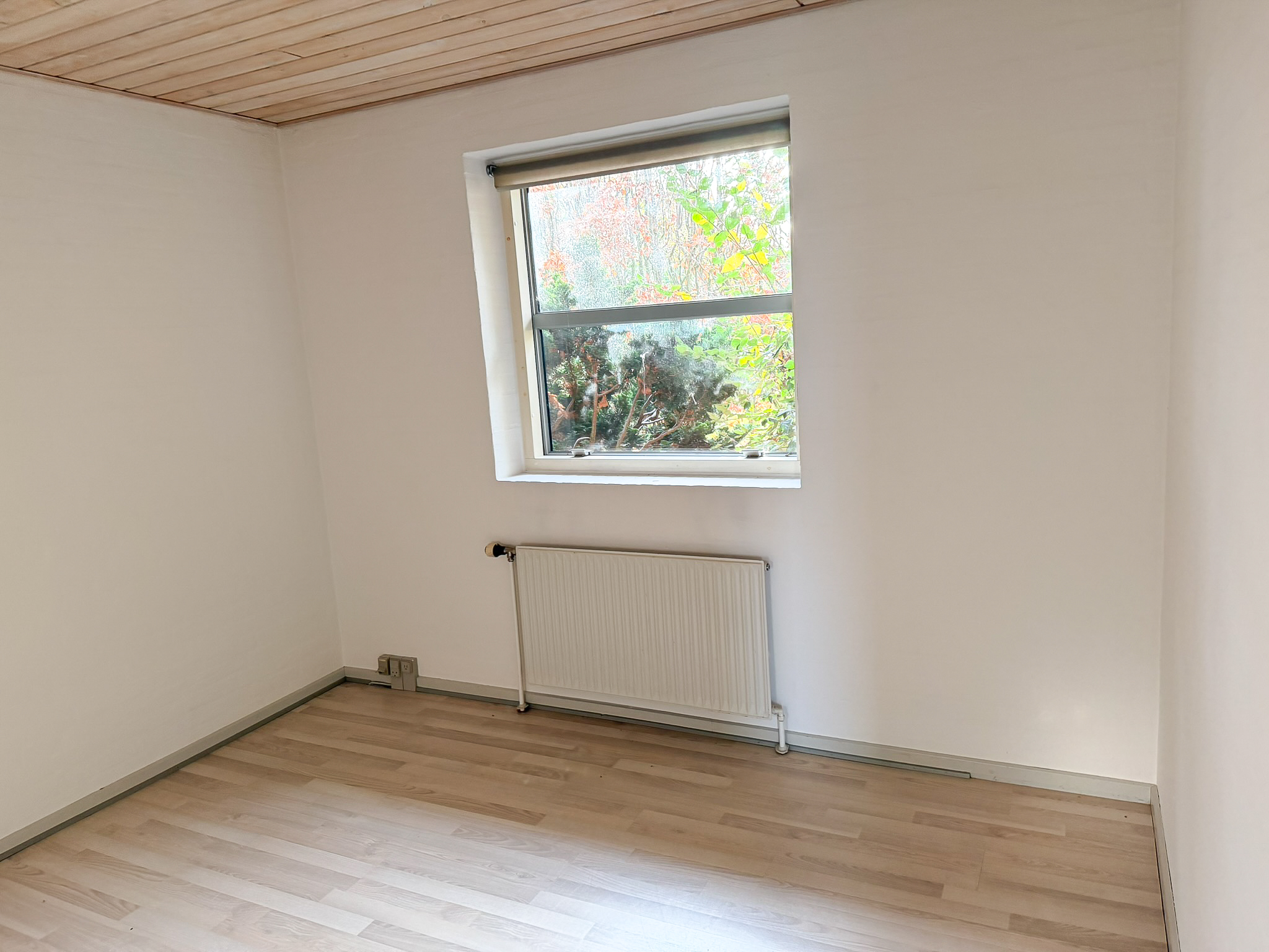 Udendørs får du to skure samt en carport, og en stor have, som man selv står for vedligeholdelsen af.
