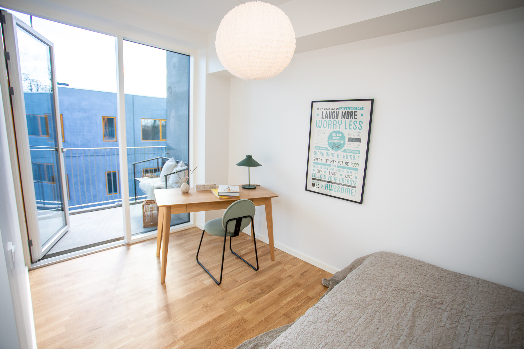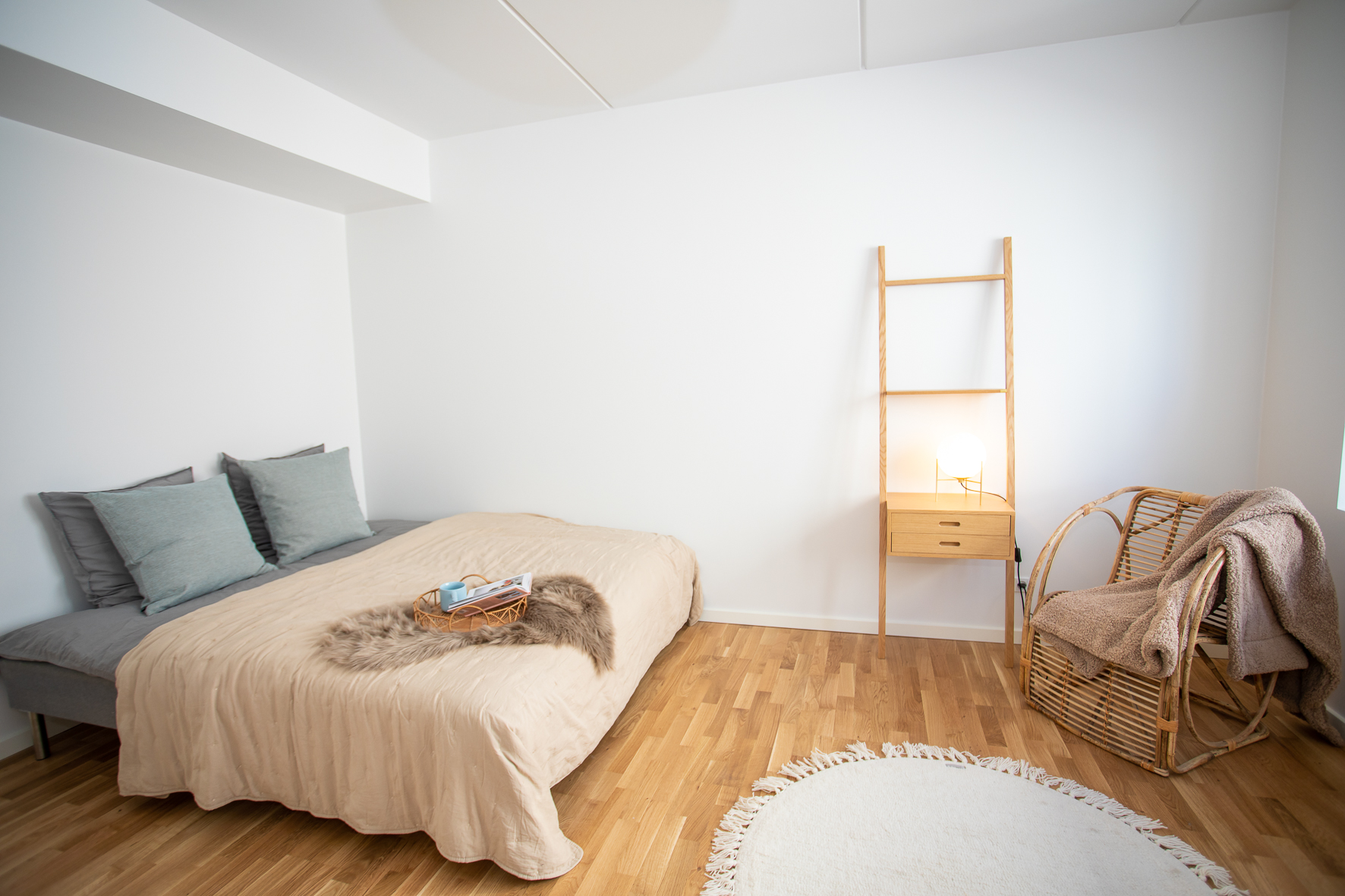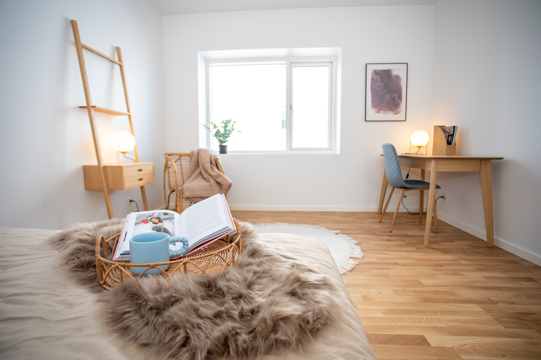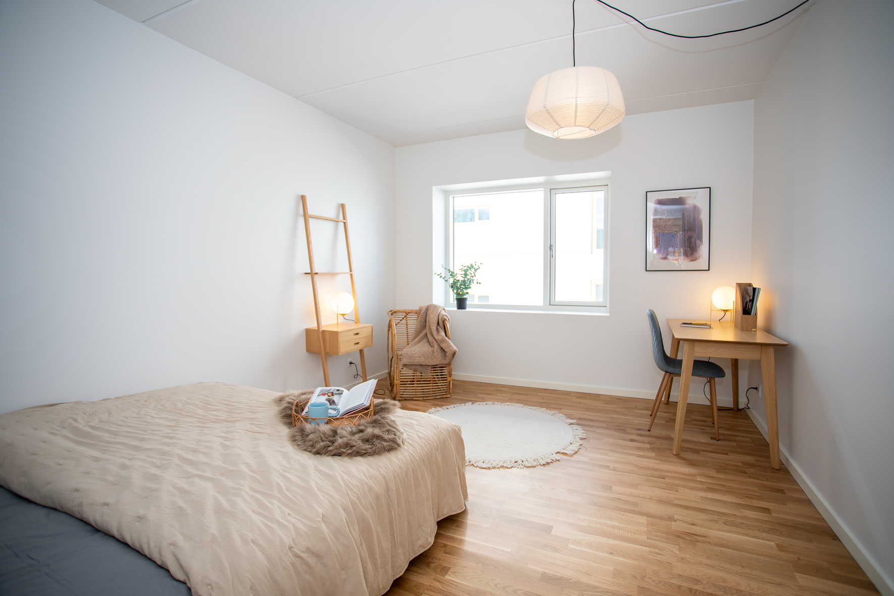 Boligen rummer tre gode værelser, der giver mulighed for både soveværelse, børneværelse eller hjemmekontor. Du kan også dele den med 2 af dine bedtse venner.