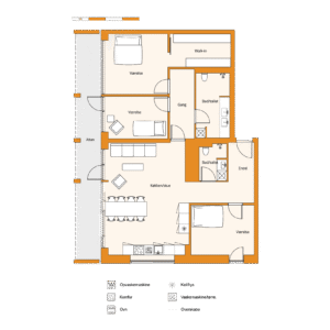 Lejligheden byder på hele 133 kvm., samt en dejlig 14 meter lang overdækket terrasse ☀️ Derudover finder du et stort køkkenalrum, ét soveværelse med indgang til et walk-in closet, samt to værelser, hvor der både er plads til et hjemmekontor, børneværelse eller gæsteværelse. Der er i lejligheden 2 badeværelser, at stort med både vaskemaskine og tørretumbler og et mindre badeværelse i entréen.